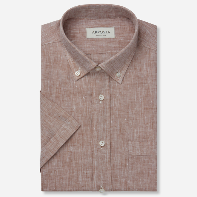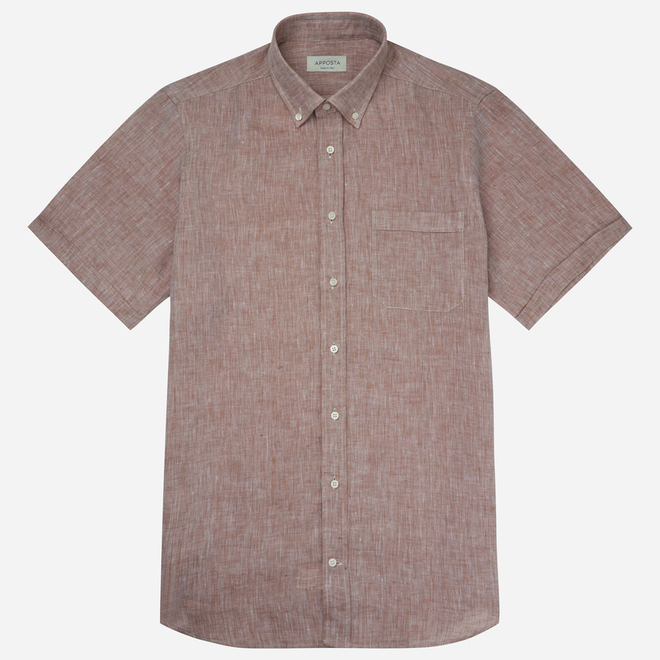 Leinenhemd mit niedrigem Button-Down-Kragen, braun