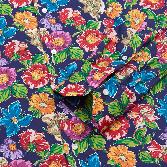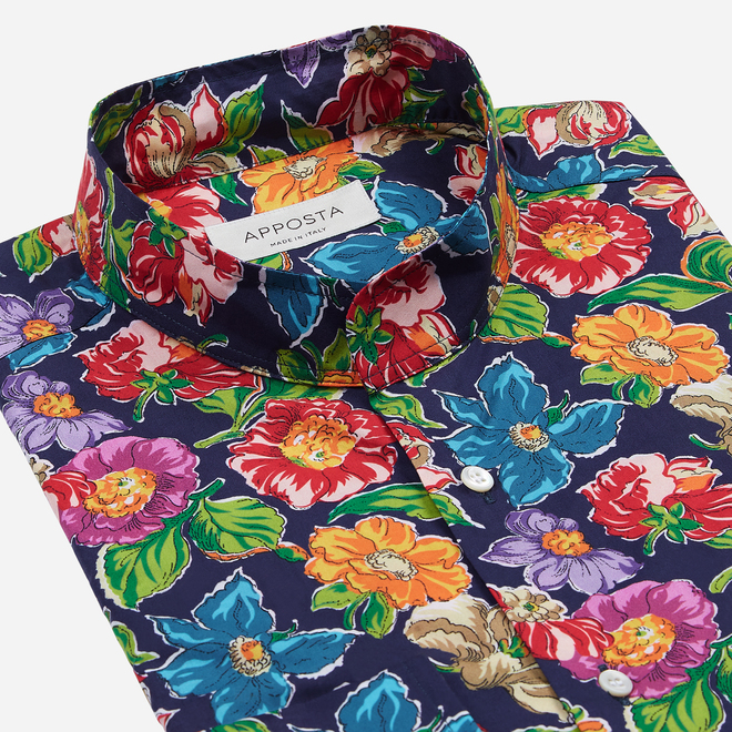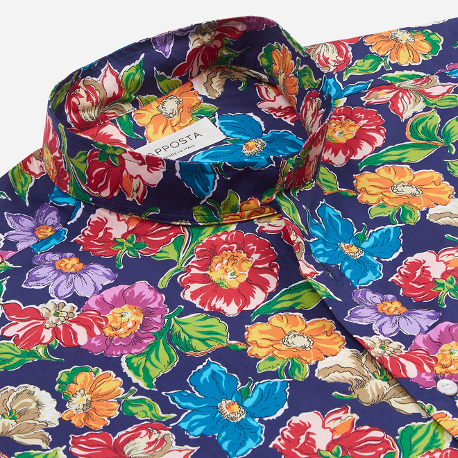 Baumwoll-Popelinehemd, mit Stehkragen, Blumendesign, mehrfarbig