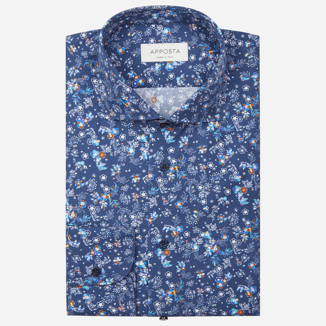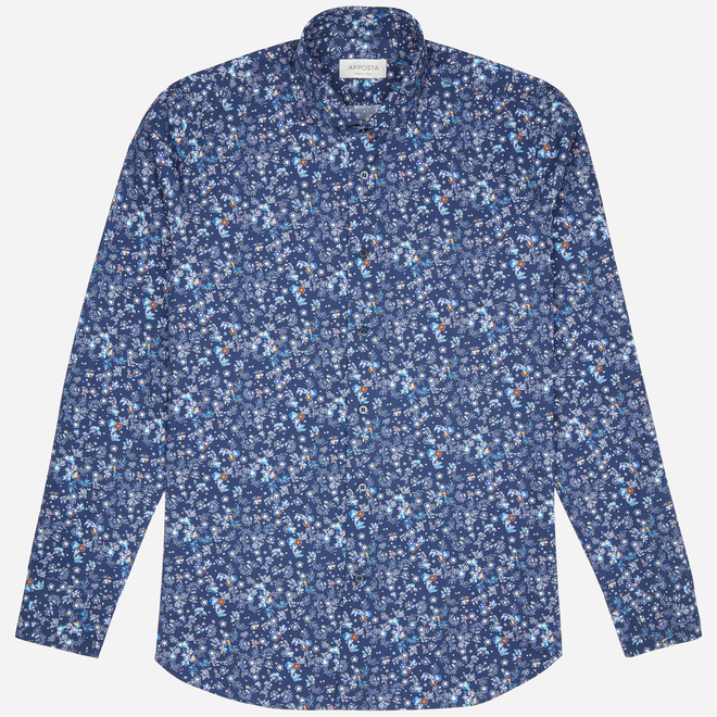 Cotton PoplinCotton PoplinName:Floreale-01876Origin:Italy Fabric characteristicsMaterial:CottonYarn:SingleThread Count:80/180/1Composition:100% CottonPattern:FloralColour:Navy BlueWeave:PoplinSeasonality:All Year RoundWrinkle Resistance:MediumIroning Effort:MediumPerceived Weight:MediumSoftness:SoftShininess:ShinyLook:OpaqueSmoothness:SmoothWashing Instructions:Machine washable