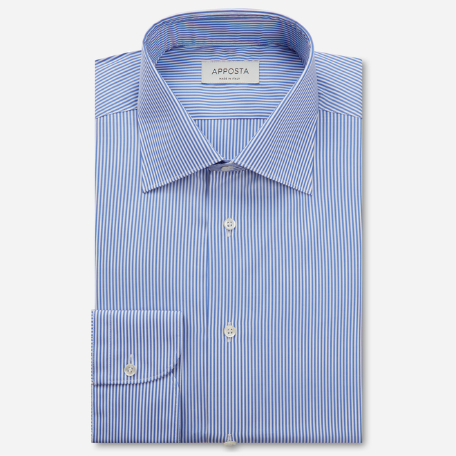 Collar style:Semi-spread collarChangeCollar optionals:Normal with removable stayChangeCuff:AngledChangePocket:Without pocketChangeFitting:Regular close fittingChangeNormal or Untucked Hem:StandardChangeButton:Mother of pearlChangePlacket:Without placketChangeStyle: