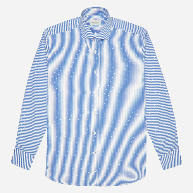 Collar style:Updated spread collar with short pointsChangeCollar optionals:Normal with removable stayChangeCuff:RoundChangePocket:Without pocketChangeFitting:Regular close fittingChangeNormal or Untucked Hem:StandardChangeButton:Mother of pearlChangePlacket:With placketChangeStyle: