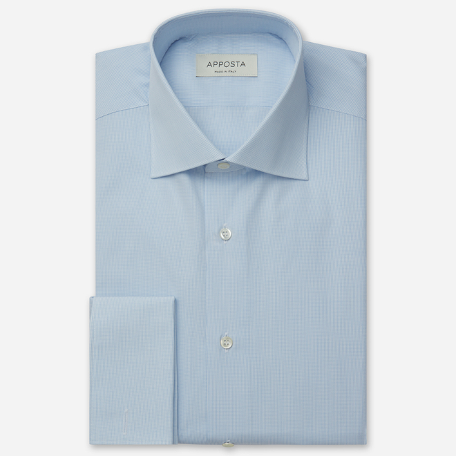 Cotton PlainCotton PlainName:Salento-00479Origin:Italy Fabric characteristicsMaterial:CottonYarn:SingleThread Count:60/160/1Composition:100% CottonPattern:Small CheckColour:Light BlueWeave:PlainSeasonality:All Year RoundWrinkle Resistance:MediumIroning Effort:MediumPerceived Weight:MediumSoftness:SoftShininess:ShinyLook:OpaqueSmoothness:SmoothWashing Instructions:Machine washable