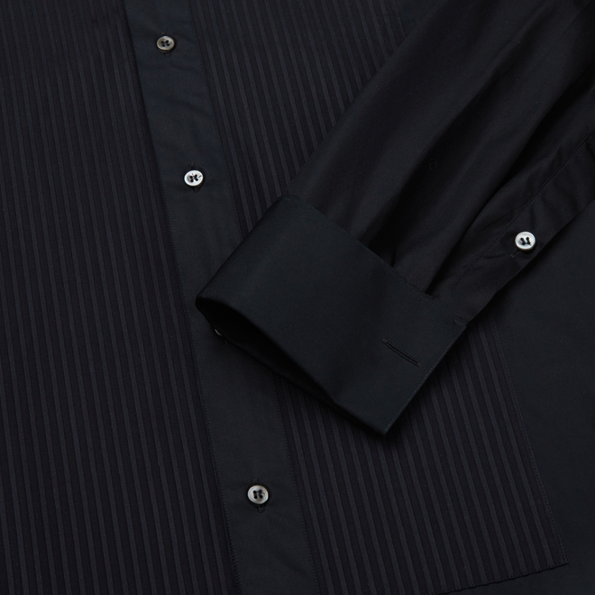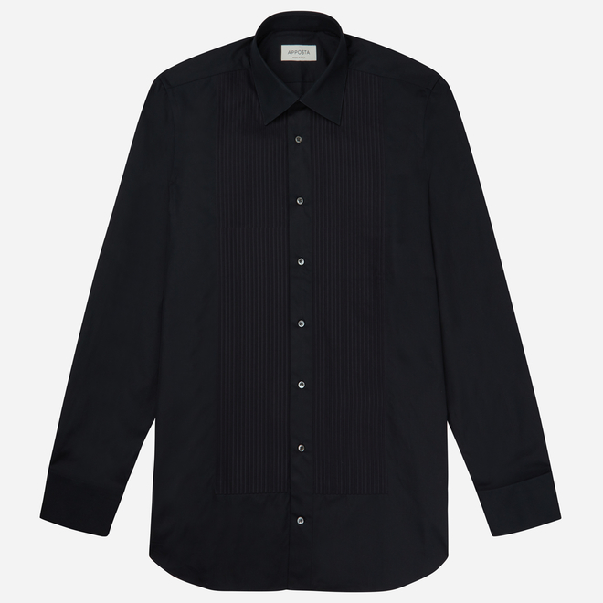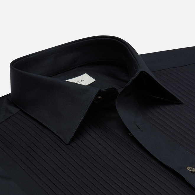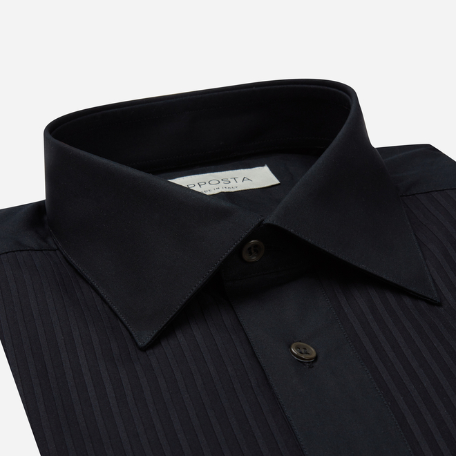 Black Straight Point Collar Cotton Poplin Shirt
