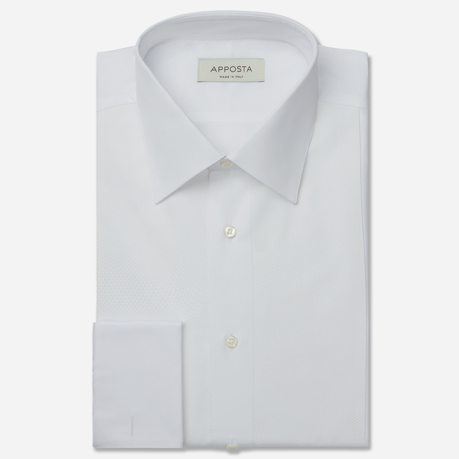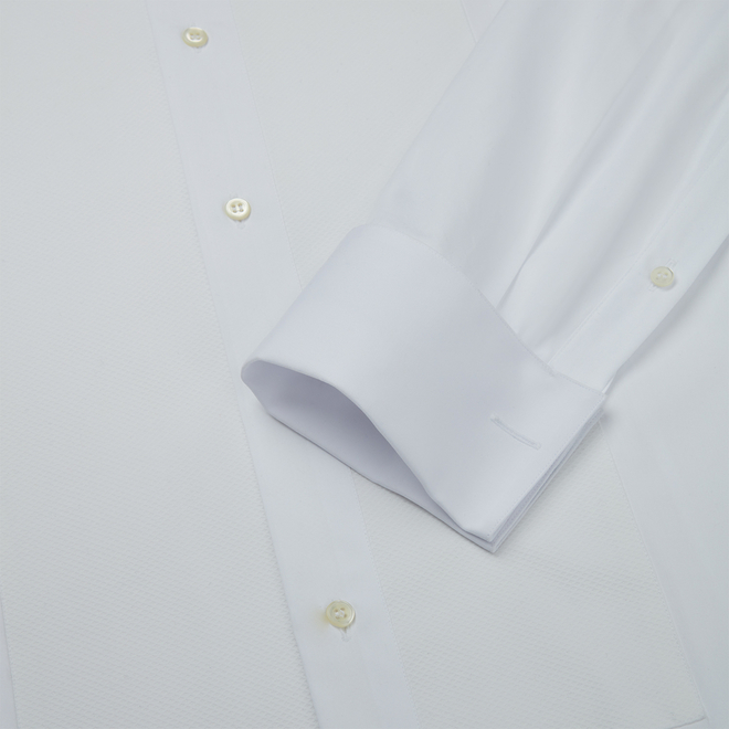 Collar style:Low straight point collarCollar optionals:Normal with removable stayCuff:French cuff (cufflinks)Pocket:Without pocketFitting:Regular close fittingNormal or Untucked Hem:StandardButton:Mother of pearlPlacket:With placketStyle: