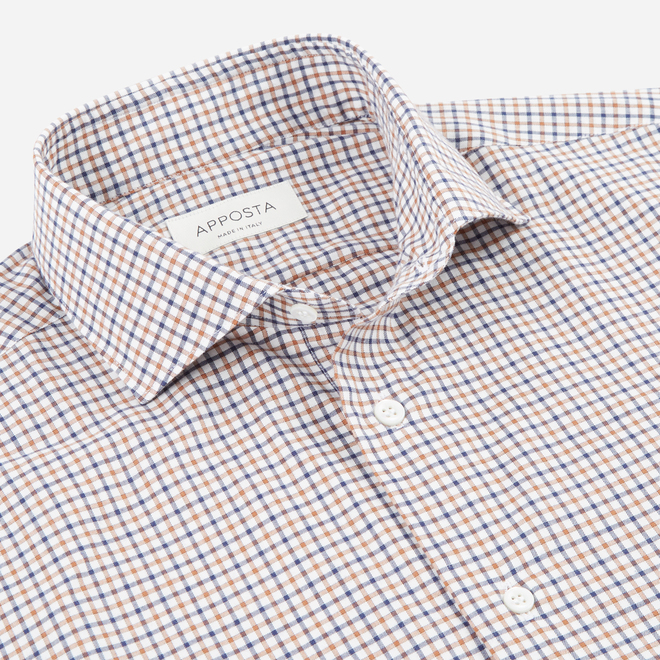 Collar style:Updated spread collar with short pointsChangeCollar optionals:SoftChangeCuff:Two buttonholeChangePocket:Without pocketChangeFitting:Regular close fittingChangeNormal or Untucked Hem:StandardChangeButton:StandardChangePlacket:Without placketChangeStyle: