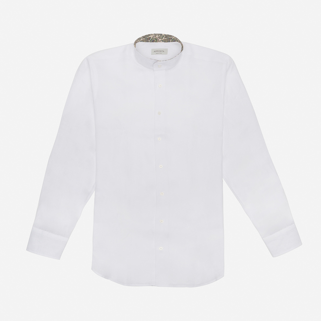 White Band Collar Linen Shirt