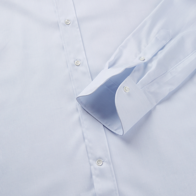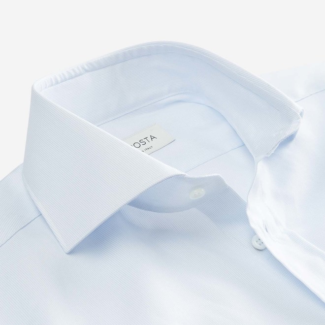 Camisa azul claro de sarga a finas rayas con tela antimanchas de algodón