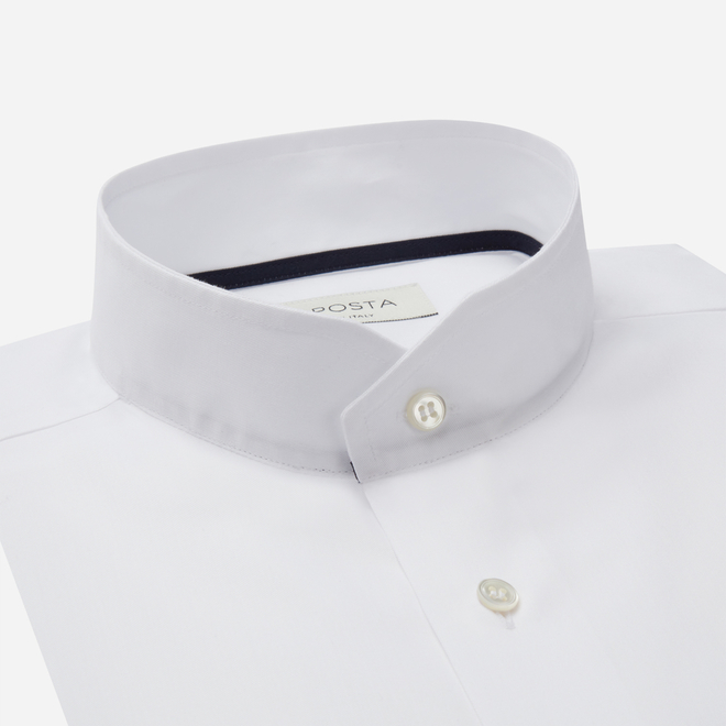 Camisa blanca de sarga con cuello mao de algodón coolmax