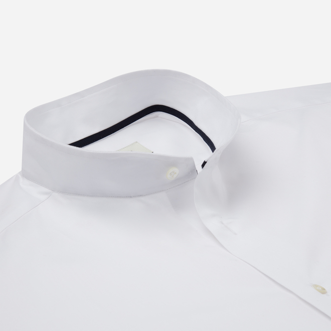Cuello estilo:Cuello redondeado altoCambiarCuello accesorios extra:NormalCambiarPuño:LimadoCambiarBolsillo:Sin bolsilloCambiarCorte:Italiano ajustadoCambiarDobladillo estándar o para llevar por fuera del pantalón:EstándarCambiarBotón:NácarCambiarTapeta:Sin tapetaCambiarStyle: