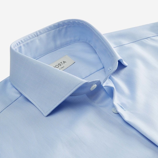 Light Blue Stain Repellent Cotton Chevron Shirt