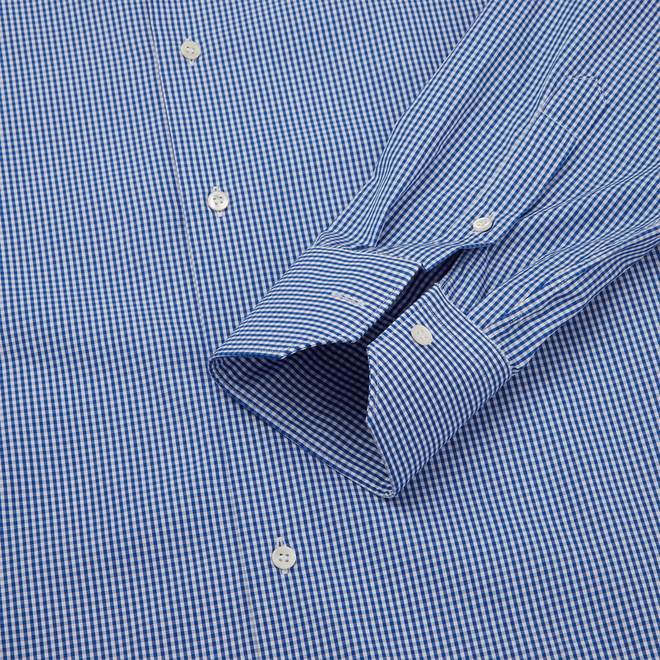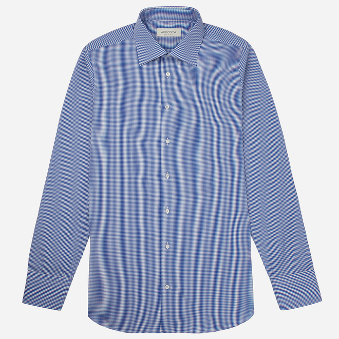 Camisa azul fil a fil a cuadros pequeños de algodón
