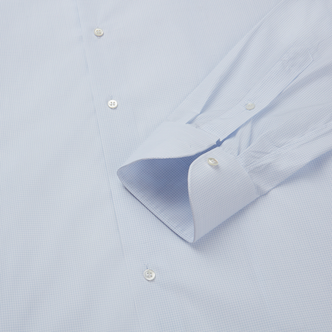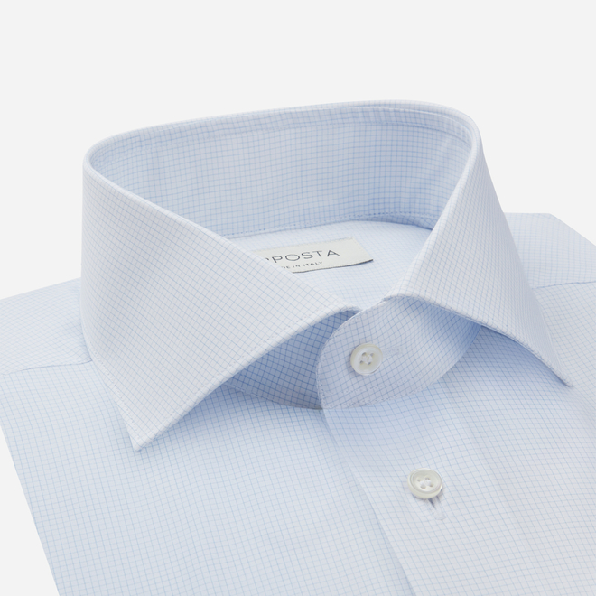 Camisa azul celeste de popelina a cuadros de algodón egipcio
