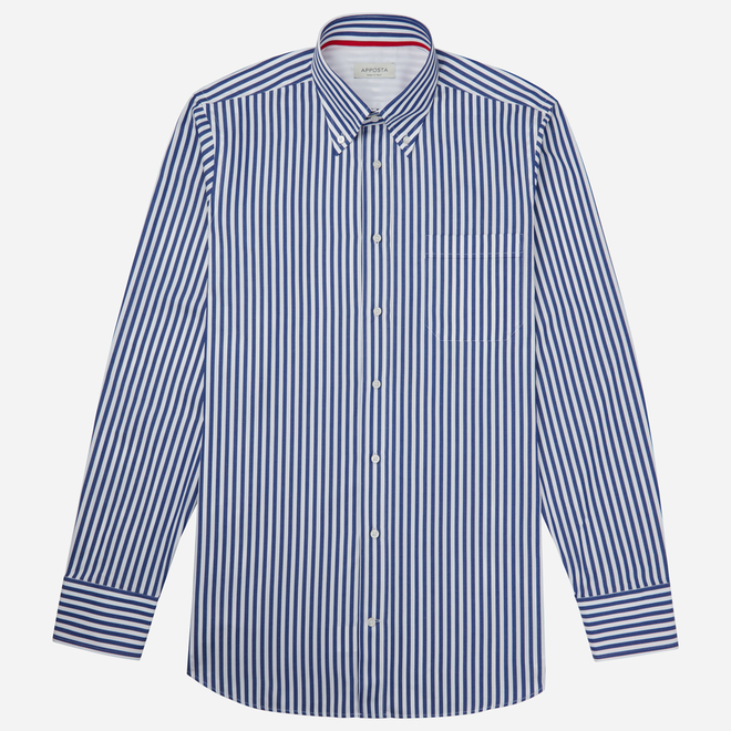 Camisa azul de popelina a rayas con cuello abotonado de algodón