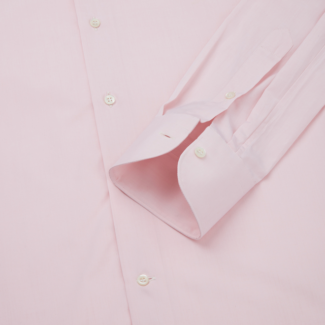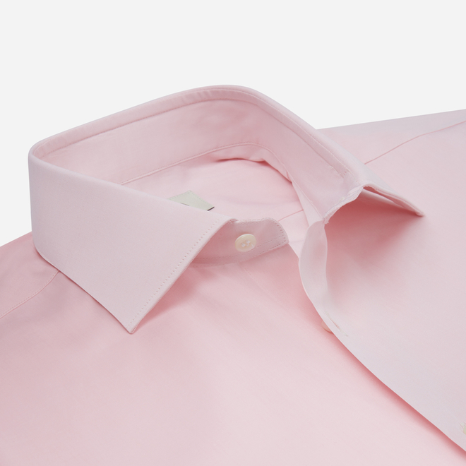 Camisa rosa de popelina con cuello semi-italiano de algodón