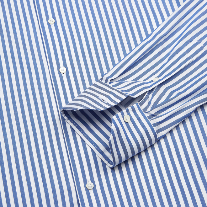 Blue Hidden Button Down Collar Stretch Cotton Twill Stripe Shirt