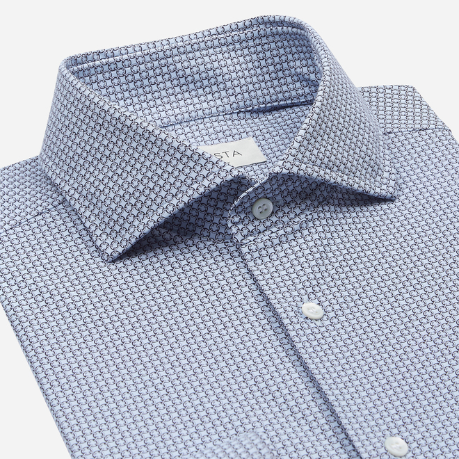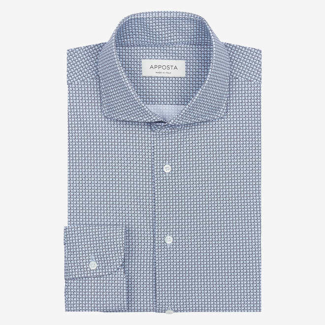 Collo stile:Collo francese bassoCambiaCollo optionals:Morbido con stecca estraibileCambiaPolso:RotondoCambiaTaschino:Senza taschinoCambiaVestibilità:Italiana aderenteCambiaLunghezza standard o da portare fuori dal pantalone:Fondo standardCambiaBottone:StandardCambiaFinta:Senza fintaCambiaContrasti: