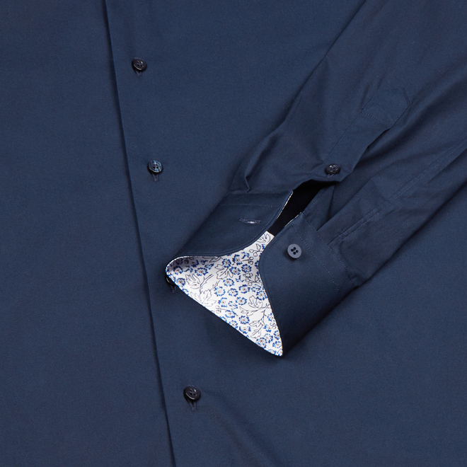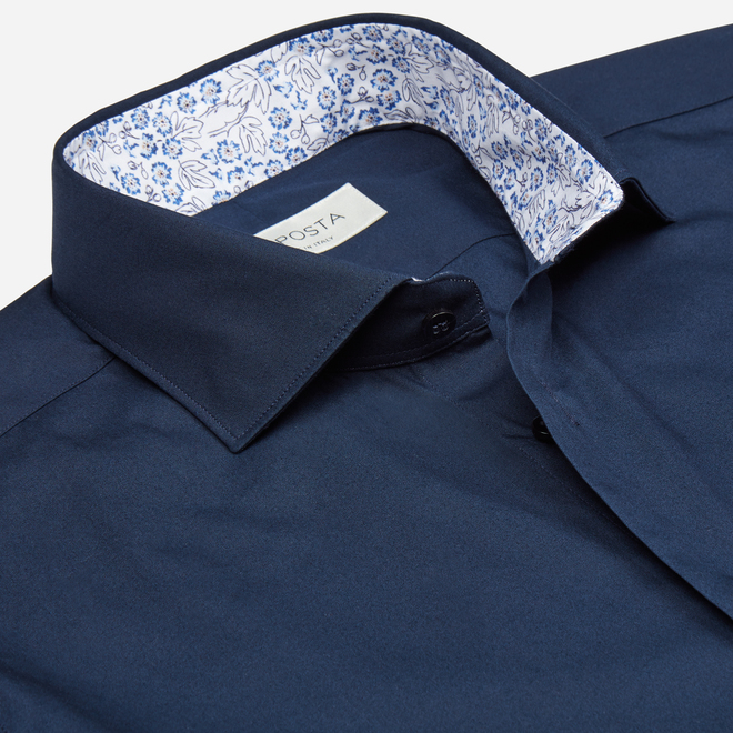 Camicia blu collo francese cotone popeline