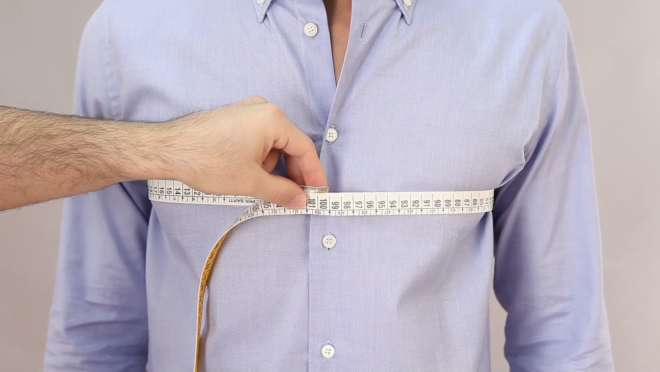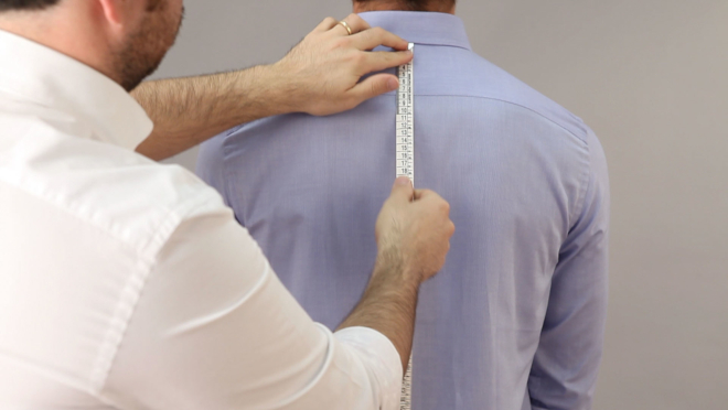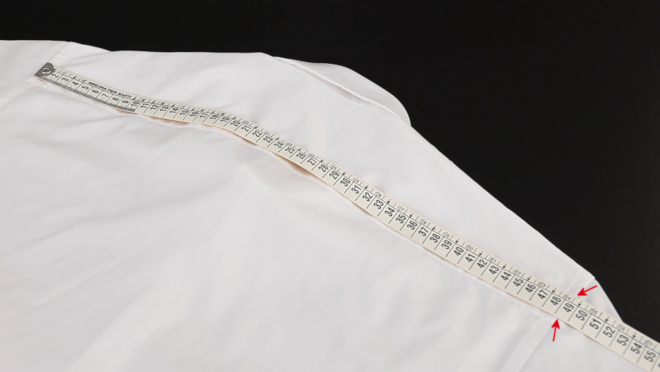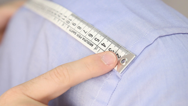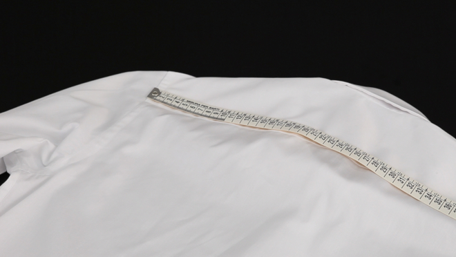 - Place the start of the measuring tape at the stitching at the back of the collar button